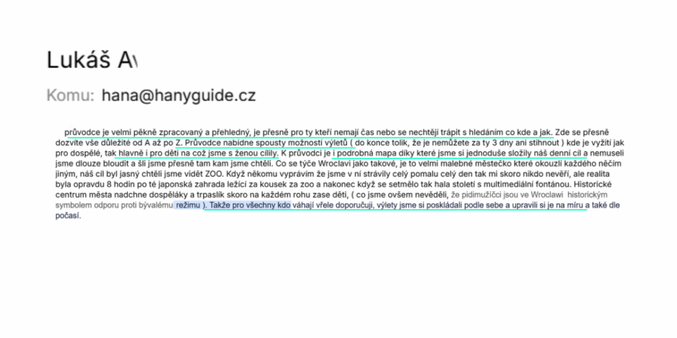 Pokud máte další otázky k tomuto průvodci nebo vás zajímá cokoliv dalšího, neváhejte mi napsat na hana@hanyguide.cz.